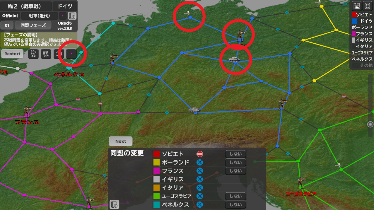 | 戦車最強(近代) | 工場設定なし | 工場設定あり、工場所持なし | 工場設定あり、工場保持あり |