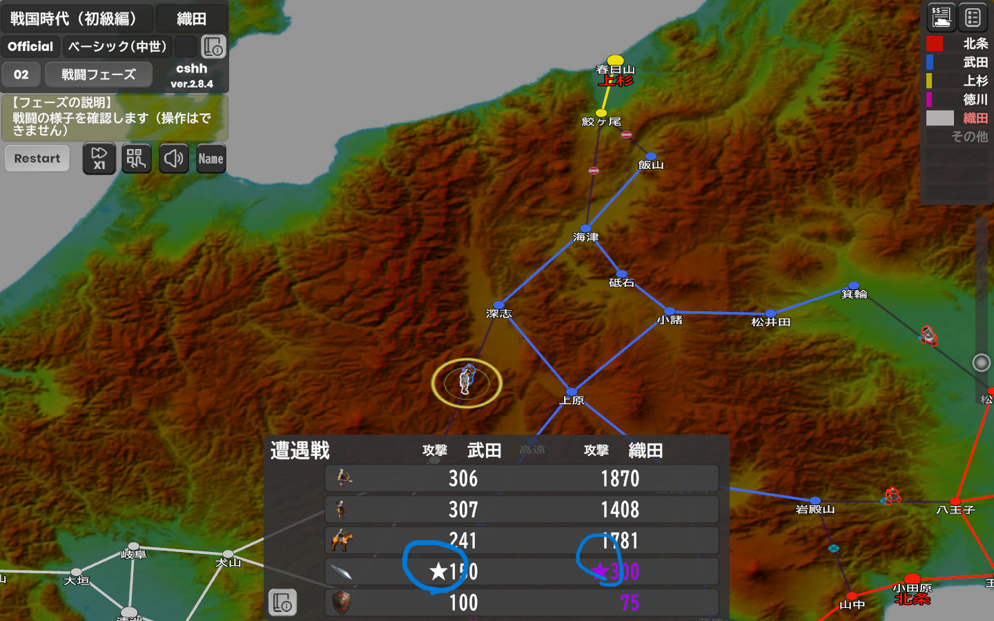 | 騎馬最強(中世) | 工場設定なし | 工場設定あり、工場所持なし | 工場設定あり、工場保持あり |